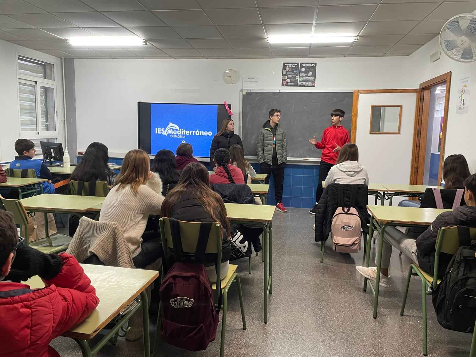 La semana pasada los alumnos Irene Albiar, Pedro Sánchez y Pablo Villegas de 3º ESO A, en representación de su grupo, pasaron el testigo de los Presupuestos Participativos a los alumnos de 2º ESO A. Con este traspaso de poderes, ¡damos comienzo a la VI Edición de los Presupuestos Participativos en el IES Mediterráneo!